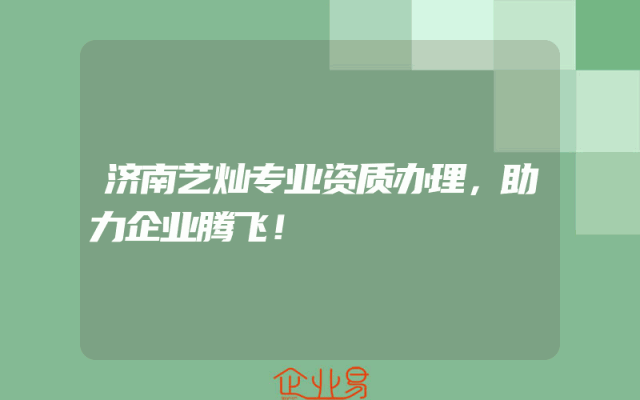 - 济南艺灿专业资质办理,助力企业腾飞!