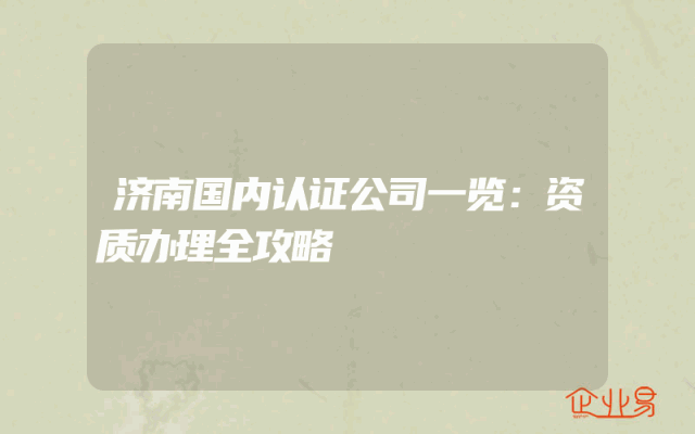 - 济南国内认证公司一览:资质办理全攻略一、济南国内认证公司概述济南作为山东省的省会城市,拥有众多国内认证公司,涵盖了各类企业资质办理服务。这些认证公司在帮助企业提升管理水平、拓展业务等方面发挥着重要作用。了解这些公司的资质办理流程,对于企业在