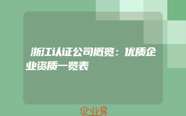 - 浙江认证公司概览:优质企业资质一览表一、浙江认证公司的概述浙江省作为中国经济发达的地区之一,拥有众多的认证公司,它们为企业提供全方位的资质办理服务。这些认证公司具备专业的团队和丰富的经验,熟知各类企业资质办理政策,为企业提供高效、便捷的服务