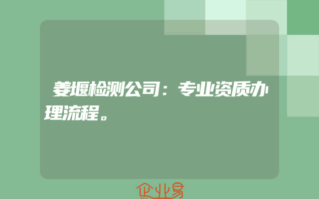 - 姜堰检测公司:专业资质办理流程解析一、了解资质要求和办理流程作为一家专业的检测公司,姜堰检测公司首要任务是全面了解相关的资质要求和办理流程。在开始办理之前,企业需深入了解国家和地方的相关法规、政策以及行业标准,确保公司具备从事检测工作的基本