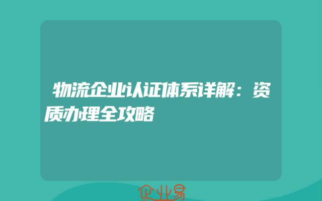 - 物流企业认证体系详解:资质办理全攻略