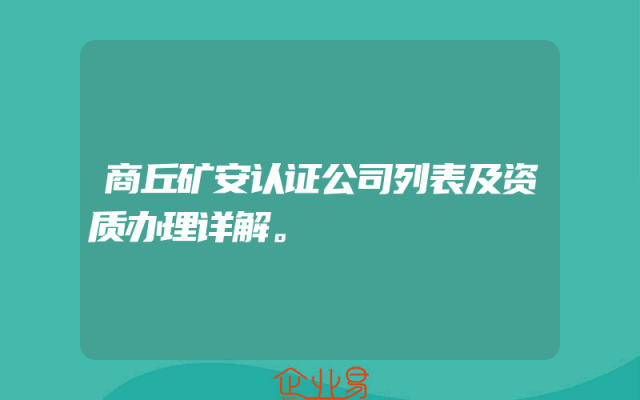 - 商丘矿安认证公司列表及资质办理详解。
