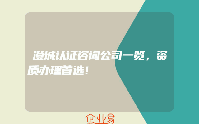 - 澄城认证咨询公司一览:资质办理首选!一、澄城认证咨询公司的背景在当今社会,企业资质的办理对于企业的发展至关重要。随着市场竞争的加剧,企业资质成为了企业参与市场竞争的入场券。澄城认证咨询公司作为专业的企业服务领域从业者,凭借丰富的经验和专业的
