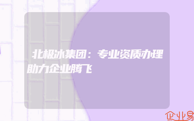 - 北极冰集团:专业资质办理助力企业腾飞一、北极冰集团简介北极冰集团是一家致力于为企业提供全方位服务的专业机构,其业务范围涵盖了企业资质办理、政策咨询等多个领域。在企业资质办理方面,北极冰集团凭借丰富的经验和专业的团队,为企业提供高效、专业的服