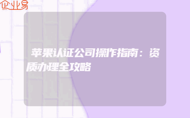 - 苹果认证公司操作指南:资质办理全攻略一、了解苹果认证公司及其重要性苹果认证公司作为行业内的权威机构,对于企业和产品的认证具有至关重要的作用。获得苹果认证不仅意味着产品质量得到了认可,还能为企业带来更多的商业机会。因此,了解如何操作资质办理流