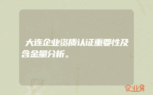 - 大连企业资质认证重要性及含金量分析。