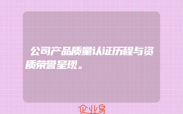 - 公司产品质量认证历程与资质荣誉呈现。