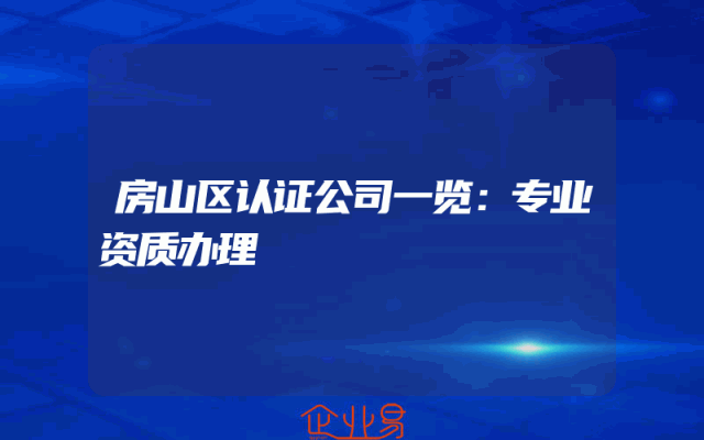 - 房山区认证公司一览:专业资质办理