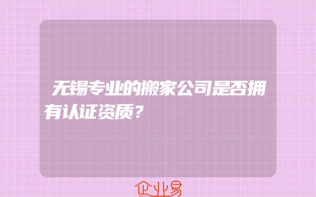 - 无锡专业的搬家公司是否拥有认证资质?