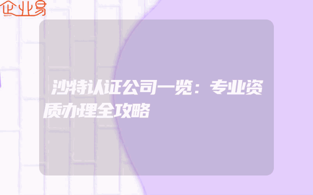 - 沙特认证公司一览:专业资质办理全攻略