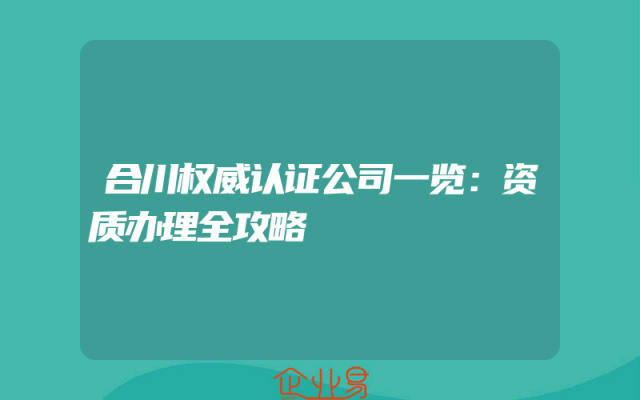 - 合川权威认证公司一览:资质办理全攻略一、了解权威认证公司的重要性在快速发展的商业环境中,企业资质的重要性日益凸显。选择一家权威的认证公司,对于企业的资质办理至关重要。权威认证公司不仅能为企业提供专业的咨询