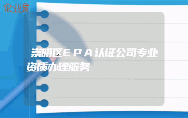 - 崇明区EPA认证公司专业资质办理服务一、崇明区EPA认证的重要性随着环保意识的日益增强,环境保护已成为企业发展的重要考量因素之一。崇明区作为上海市的重要组成部分,其环境保护工作尤为重要。EPA认证作为企业环保资质的重要证明,对于提升企业形象