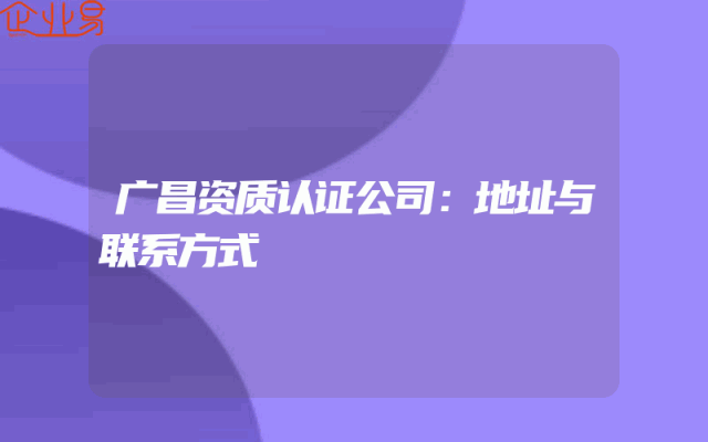 - 广昌资质认证公司:地址解析与联系方式公司位置及联系方式详解广昌资质认证公司作为行业内知名的服务机构,为广大企业提供全方位的资质办理服务。了解公司的具体位置及联系方式,是客户办理业务的首要任务。本文将详细解析广昌资质认证公司的地址及联系方式,