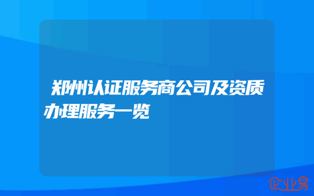 - 郑州认证服务商公司及资质办理服务一览一、郑州认证服务商公司概述在郑州,众多认证服务商公司活跃于市场,为企业提供全方位的资质办理服务。这些公司具备丰富的经验和专业知识,为企业提供高效、专业的服务,助力企业顺利发展。二、资质办理服务内容在郑州,