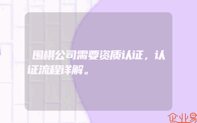 - 围棋公司需要资质认证,认证流程详解一、资质认证概述在现今的商业环境中,各类企业均需遵循一定的法规和政策,以确保服务质量与合法性。对于围棋公司而言,进行资质认证是展示公司实力、提升行业信誉的必经之路。资质认证不仅证明公司在围棋领域具备专业水准