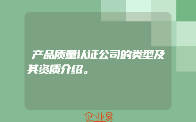 - 产品质量认证公司的类型及其资质介绍一、产品质量认证公司类型在当今社会,产品质量认证对于企业的长远发展至关重要。为确保产品质量,提高市场竞争力,许多企业寻求专业的产品质量认证公司的服务。这些认证公司大致可分为以下几类:1.第三方检测认证机构: