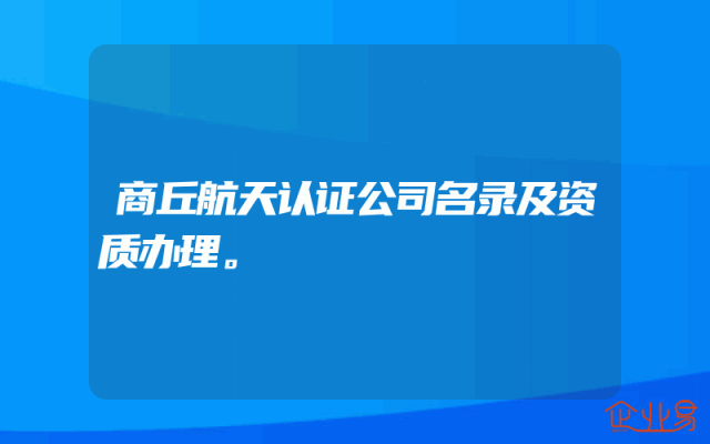 - 商丘航天认证公司名录及资质办理解析一、商丘航天认证公司名录概述在商丘市,涉及航天领域的认证公司逐渐增多,这些公司多数致力于为企业提供全方位的资质办理服务。这些公司的名录反映了商丘航天认证行业的发展现状,同时也为寻求资质办理的企业提供了参考。
