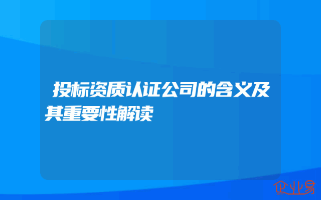 - 投标资质认证公司的含义及其重要性解读一、投标资质认证公司的含义投标资质认证公司主要是指那些为企业提供资质办理服务的专业机构。在各类工程项目、政府采购及其他商业合作中,企业往往需要证明自身的资质和实力,以证明有能力完成相关项目。这样的