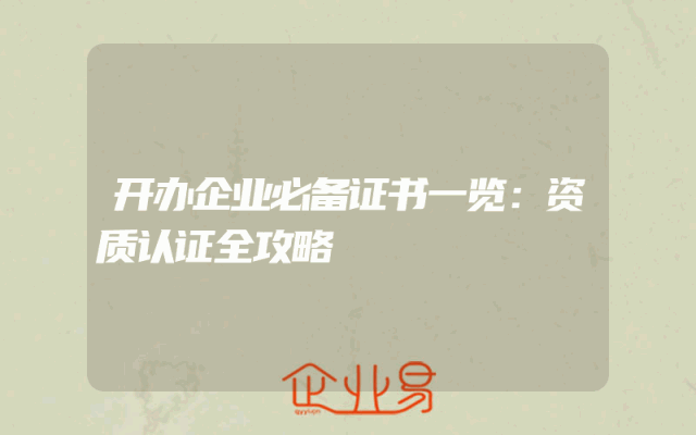- 开办企业必备证书一览:资质认证全攻略一、了解企业资质认证的重要性在现代社会,开办企业不仅需要充足的资金、合适的人员和优秀的商业模式,还需要一系列的资质证书来证明企业的合法性和专业能力。这些资质认证不仅