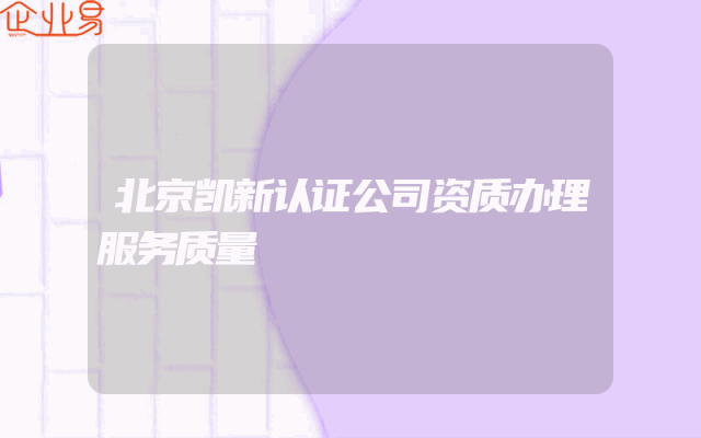 - 北京凯新认证公司资质办理服务质量解析一、凯新认证公司背景及概述北京凯新认证公司作为一家专业的企业服务认证机构,多年来致力于为企业提供全方位的资质办理服务。随着市场需求的不断增长,凯新认证公司凭借其丰富的经验和专业能力,赢得了广大企业的信赖。