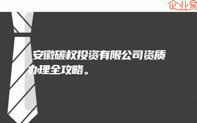 - 安徽碳权投资有限公司资质办理全攻略随着低碳经济的蓬勃发展,碳权投资已成为国内的一项重要业务领域。安徽碳权投资有限公司在开展相关业务前,需完成相应的资质办理。本文将为您提供一份详尽的安徽碳权投资有限公司资质办理全攻略,助您顺利获取所需资质,确