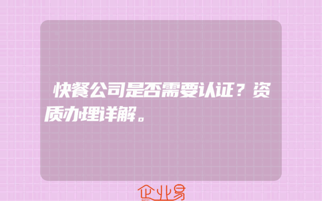 - 快餐公司是否需要认证?资质办理详解一、快餐公司的运营背景及重要性随着现代生活节奏的加快,快餐行业迅速崛起并持续发展。快餐公司以其高效、便捷的服务特点,满足广大消费者的饮食需求。然而,在竞争激烈的市场环境中,快餐公司要确保合规经营,必须了解和