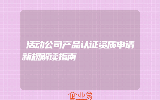 - 活动公司产品认证资质申请新规解读指南一、新规定概述随着市场环境的不断变化和行业发展的需要,针对企业产品认证资质申请,新的规定和政策应运而生。作为专业的企业服务行业从业者,我对新的产品认证资质申请规定进行了深入研究,下面将为大家详细解读。二、