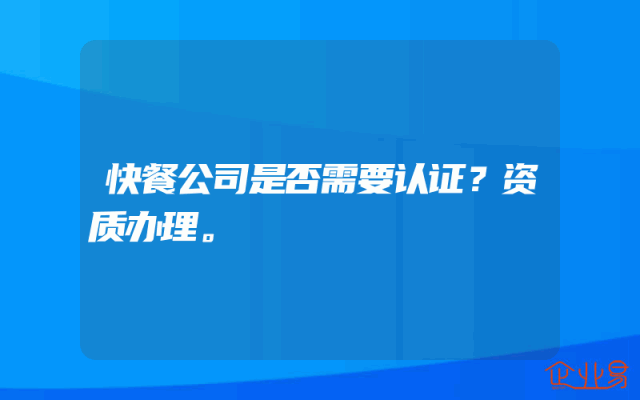 - 快餐公司是否需要认证?资质办理。