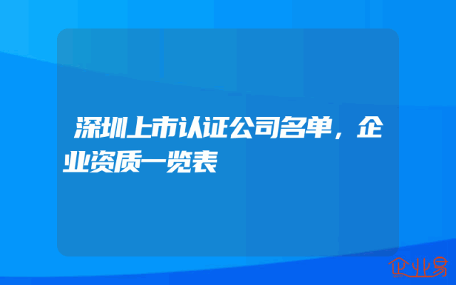 - 深圳上市认证公司名单,企业资质一览表