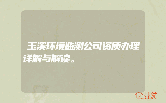 - 玉溪环境监测公司资质办理详解与解读。
