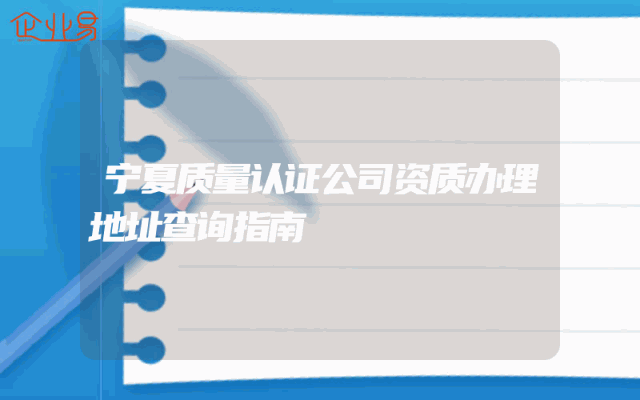 - 宁夏质量认证公司资质办理地址查询指南