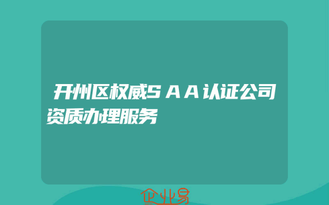 - 开州区权威SAA认证公司资质办理服务