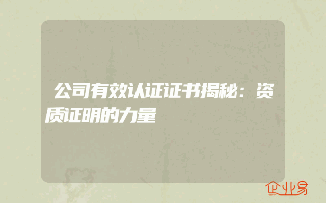 - 公司有效认证证书揭秘:资质证明的力量