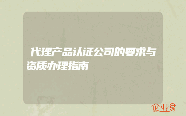 - 代理产品认证公司的要求与资质办理指南