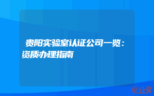- 贵阳实验室认证公司一览:资质办理指南