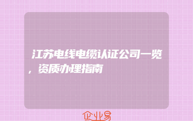 - 江苏电线电缆认证公司一览,资质办理指南