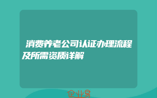 - 消费养老公司认证办理流程及所需资质详解