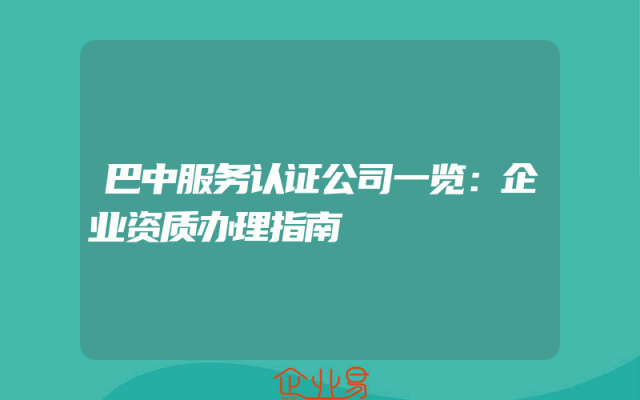 - 巴中服务认证公司一览:企业资质办理指南
