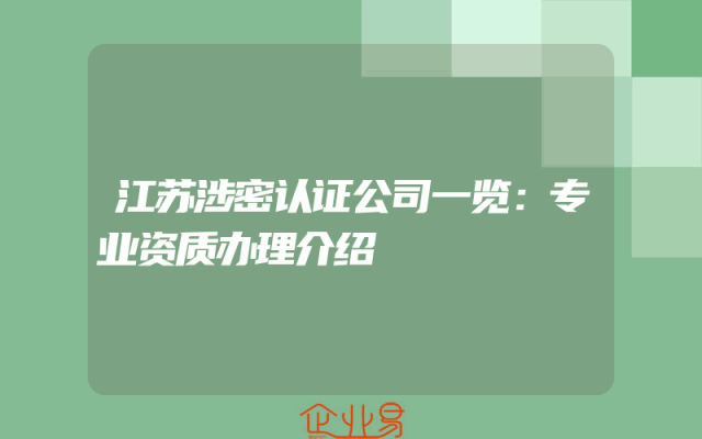 - 江苏涉密认证公司一览:专业资质办理介绍