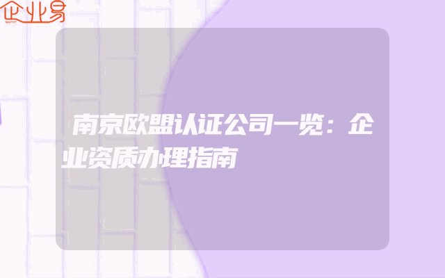 - 南京欧盟认证公司一览:企业资质办理指南