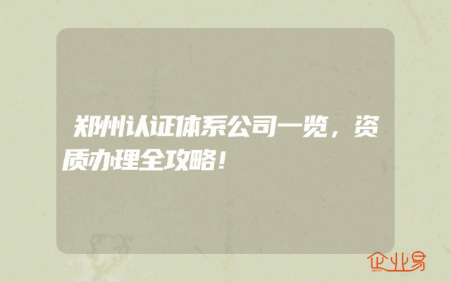 - 郑州认证体系公司一览,资质办理全攻略!