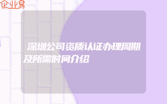 - 深圳公司资质认证办理周期及所需时间介绍