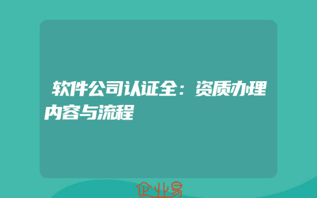 - 软件公司认证全:资质办理内容与流程
