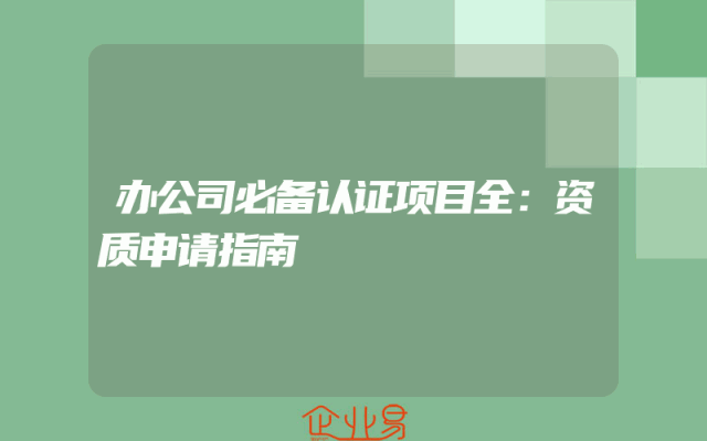 - 办公司必备认证项目全解析:资质申请指南一、企业资质认证的重要性在现代商业环境中,企业资质认证对于公司的运营和发展至关重要。它不仅体现了企业的实力和信誉,还是参与市场竞争的必备条件。随着各行业监管政