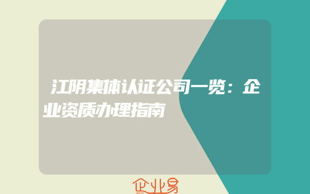 - 江阴集体认证公司一览:企业资质办理指南一、江阴集体认证公司概述江阴市作为重要的经济中心之一,集聚了大量企业,而集体认证公司作为为企业提供资质办理服务的重要机构,在江阴地区亦拥有广泛的影响力。这些集体认证公司在协助企业合法合规经营、提升企业竞