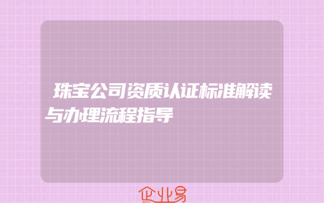 - 珠宝公司资质认证标准解读与办理流程指导一、珠宝公司资质认证的重要性在珠宝行业,资质认证对于公司的重要性不言而喻。它不仅确保了公司产品的质量和服务的标准,还提高了消费者的购买信心。随着市场竞争的加剧,拥有完善的资质认证体系也是企业持续发展的基