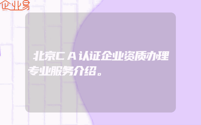 - 北京CA认证企业资质办理专业服务介绍一、CA认证简介在当今数字化时代,信息安全显得尤为重要。CA认证(即证书认证)作为企业信息安全的核心组成部分,已成为企业开展电子商务、电子政务的必要资质。北京作为中国的政治、经济、文化中心,其企业