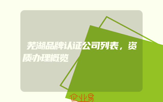 - 芜湖品牌认证公司列表及资质办理解析概览一、芜湖品牌认证公司列表芜湖市作为经济快速发展的地区,拥有众多品牌认证公司。这些公司致力于为企业提供全方位的资质办理服务,助力企业提升品牌影响力与竞争力。以下是部分知名的品牌认证公司列表:芜湖市XX品牌