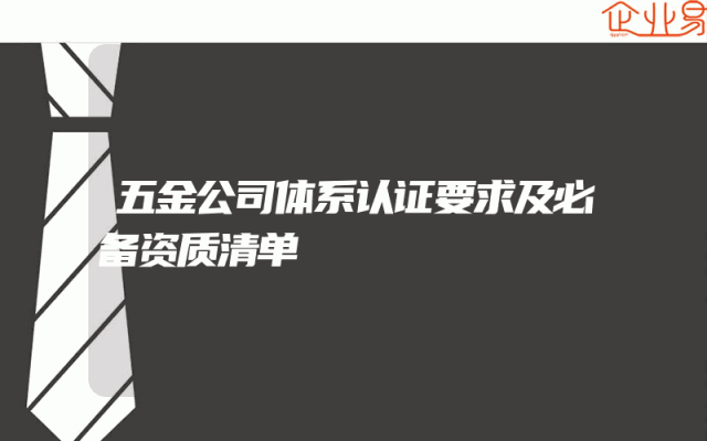 - 五金公司体系认证要求解析及必备资质清单在现代企业管理体系中,五金公司的体系认证及资质获取成为了提升企业竞争力不可或缺的一环。本文将详细解析五金公司在体系认证方面的要求,并列出必备资质清单,帮助企