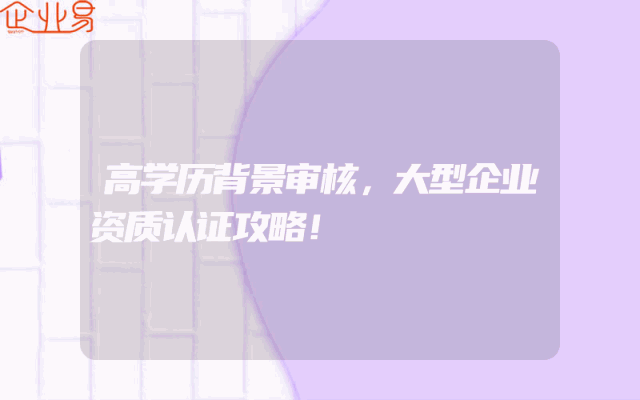 - 高学历背景审核与大型企业资质认证攻略一、高学历背景审核的重要性在当今社会,随着教育水平的提高和人才竞争的加剧,高学历背景审核已经成为企业资质认证的重要环节之一。对于大型企业而言,拥有高素质的人才队伍是企业持续发展的核心动力。因此,在资质认证